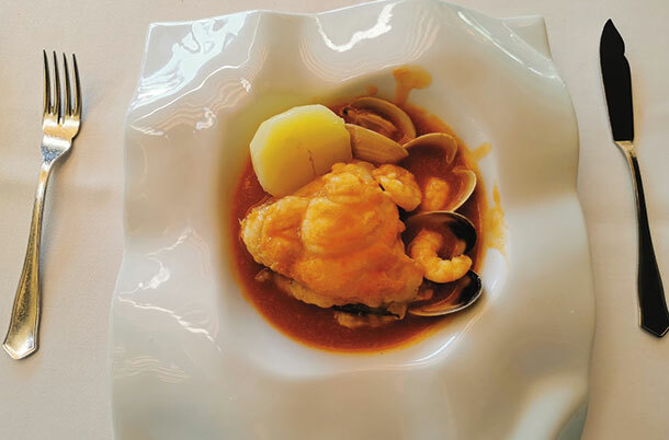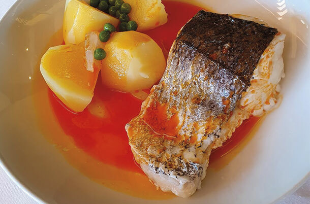 Rodaballo a la parrilla de carbón con reftito de ajo